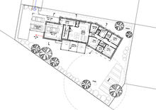Několik parcel za vesnicí, napojených odbočkou ze silnice. Typická rozvojová plocha obce ležící u většího města. Ještě nedávno zde bylo pole. Přesto má místo své kvality. Hned za silnicí je les a pozemek pro navržený dům leží ve výhodné koncové pozici s výhledem do otevřené krajiny. Svou plochou přes 1000 m2 umožňuje nejen umístění domu, ale i vytvoření zahrady kolem něj. Takové bylo i zadání.