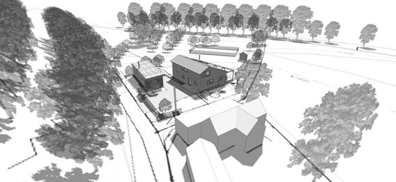 Dům je napojen na vlastní studnu a kořenovou čistírnu. Tvoří funkční celek s o dva roky dříve postavenou dílnou. Vzájemná poloha staveb formuje prostor kolem nich. Vzniká tak přívětivý vstupní dvorek i soukromá část zahrady odstíněná od cesty.
